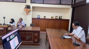 Rapat dilaksanakan secara virtual melalui Zoom Meeting dan diikuti dari Ruang Rapat Lantai II Dinas PMA Provinsi Bali, Rabu (25/2).
